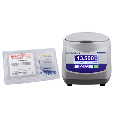 The Vial Centrifuge with 8 Position rotor for 2ml heavy wall vials, includes 8 special adapters one pack of RSA-Pro X™ MRQ screw top vials with black, non-slit AQR™ Caps. (9512S-1DMP-PX). MicroSolv™ Brand. 1 EA.