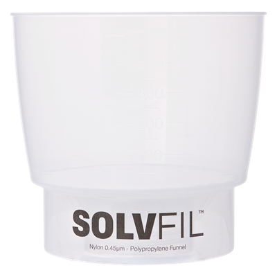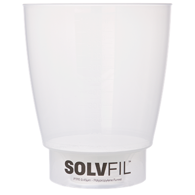 SOLVFil™ is made in ISO 13485 clean room and can be used multiple times with the same solvents until the unit no longer filters and is clogged if desired.
