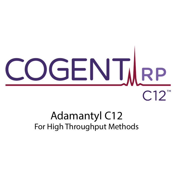 Cogent RP™ C12 is based on Adamantine, which is a diamond-like crystal structure that remains more rigid than traditional long chain alkyl ligands under Reverse Phase conditions. This column is well suited for high speed gradient analysis, where fast re-equilibration is necessary or for resolving complex mixtures.