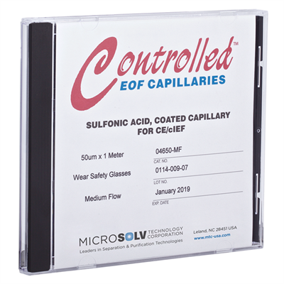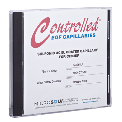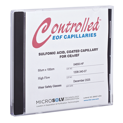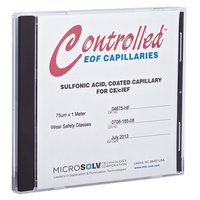 Controlling the electroosmotic flow (EOF) is one of the most important parameters in Capillary Electrophoresis. The Controlled Flow Capillaries™ are covalently bonded with an acrylamide derivative surface to keep the EOF independent of the pH from 1.5 to 8.0. The flow rates of these capillaries will be much faster and reproducible compared to bare fused silica.