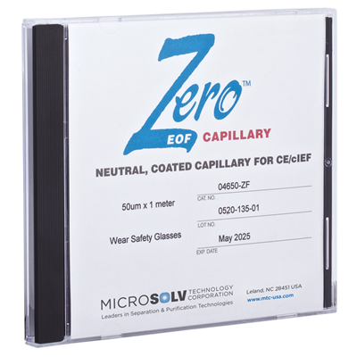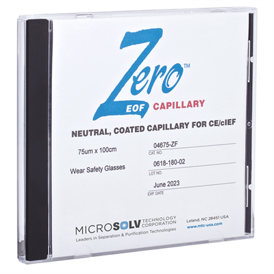 Zero EOF Capillaries™ are one of our most popular items for CE. Covalently bonded for stability, these capillaries produce virtually no EOF even at high voltage and are useful between pH 2.0 and 8.0. No change in methodology is required other than the conditioning step and are supplied with certificates of analysis for EOF characteristics. For best results, it is recommended NOT to use heat to create windows in coated capillaries.