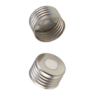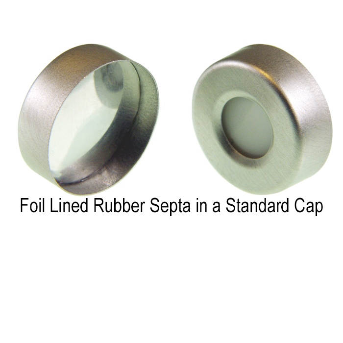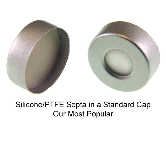 Different cap styles such as magnetic caps, pressure relief caps and standard crimp caps are available. *We offer almost every type of septa including septa with aluminum foil, black rubber, blue rubber, butyl rubber, butyl rubber/PTFE, dark grey rubber, grey rubber, low bleed silicone rubber/PTFE, molded rubber, natural rubber, orange rubber, pre-slit septa, red rubber, silicone rubber/PTFE (Most Popular), translucent rubber and septa for SPME.