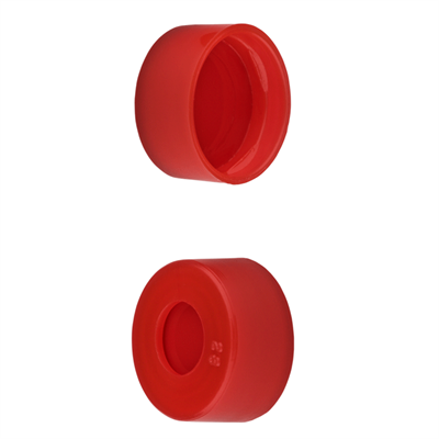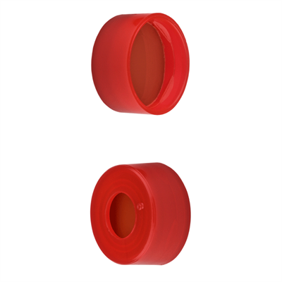 Caps, Snap Top, with Silicone Rubber / PTFE Septa, fitted in smooth, polyethylene, Red Caps. For use with 11mm, 12x32mm Snap Top autosampler vials. MicroSolv Brand. 100/PK.