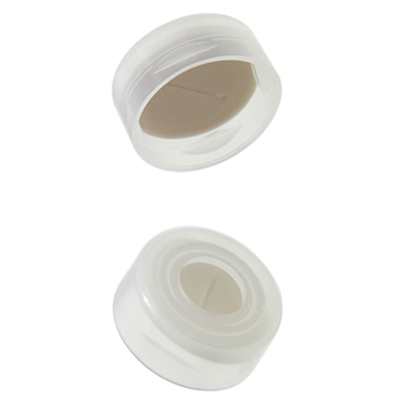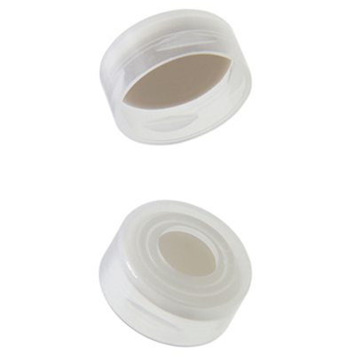 Caps, Snap Top, with Silicone Rubber / PTFE Septa, fitted in smooth, polyethylene, Natural Translucent Caps. For use with 11mm, 12x32mm Snap Top autosampler vials. MicroSolv Brand. 100/PK.