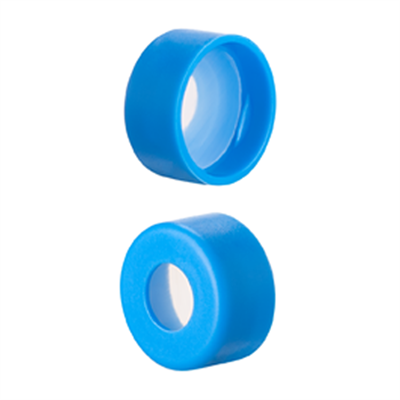 Caps, Snap Top, with Clear Silicone Rubber / PTFE, ultra-pure, LCMS compatible LC Clean Septa, fitted in smooth, polyethylene Blue Caps. For use with 11mm, 12x32mm, Snap Top autosampler vials. MicroSolv Brand. 100/PK.