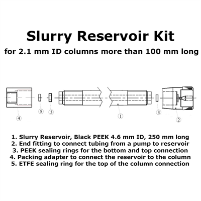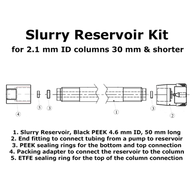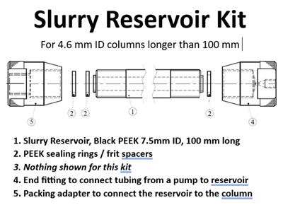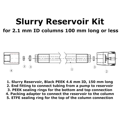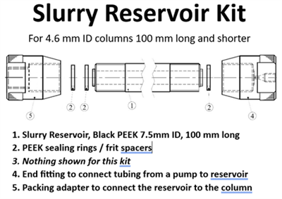 Our All-PEEK column packing Slurry Reservoir Kits are used by professional column packers as well as end users and includes everything you need to pack "bioinert" HPLC columns. Easy to use with standard HPLC packing pumps and the packing material of your choice. Click HERE for replacement parts for these kits.