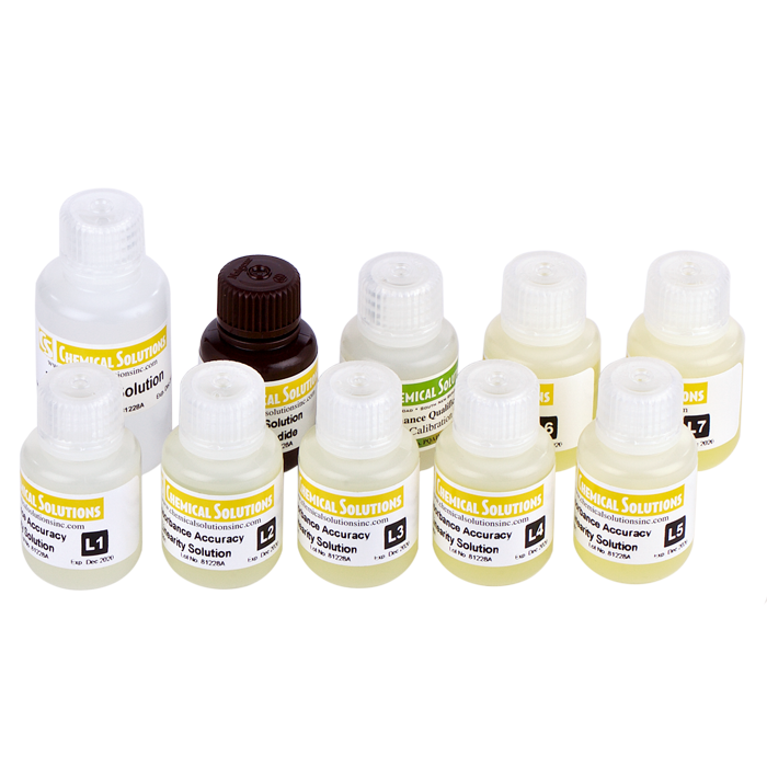 UV-vis Calibration Test Kit, Complete. Includes NIST traceable solutions, software. Chemical Solutions brand. 1 EA.