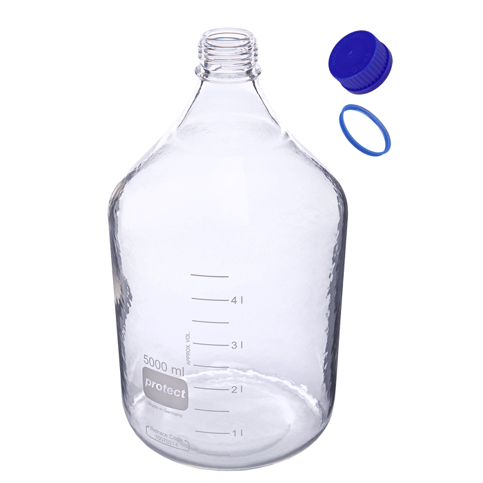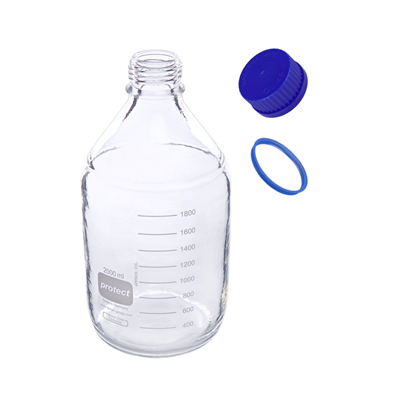 Borosilicate bottles coated in shatter proof plastic | Safety | Mobile phase reservoirs.
