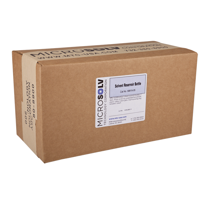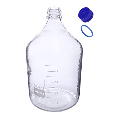 These safety coated, chemically inert, mobile phase reservoir bottles are available with a standard taper neck 29/32 in a 1L size or a GL45 threaded neck with various volumes. The most common sizes of the GL 45 bottles are 1 and 2 liters for use in your HPLC’s, mobile phase tray. For labs that want to make larger batches; 5L and 10L sizes are also available.