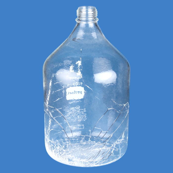 These borosilicate glass bottles are coated in a proprietary plastic that will not fully breach if dropped to the ground, even when full of solvent.