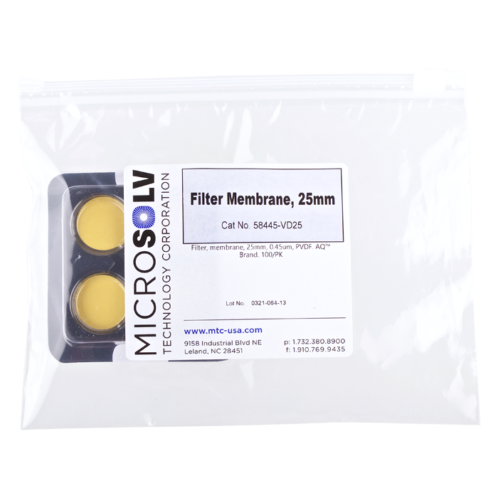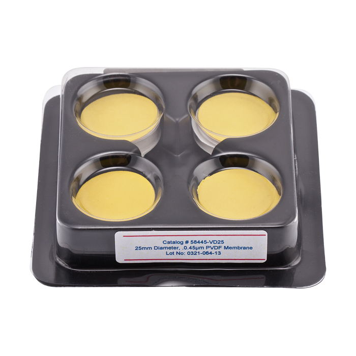 Filters, Membrane, 25mm, 0.45um, PVDF. Round, AQ Brand. 100/PK.