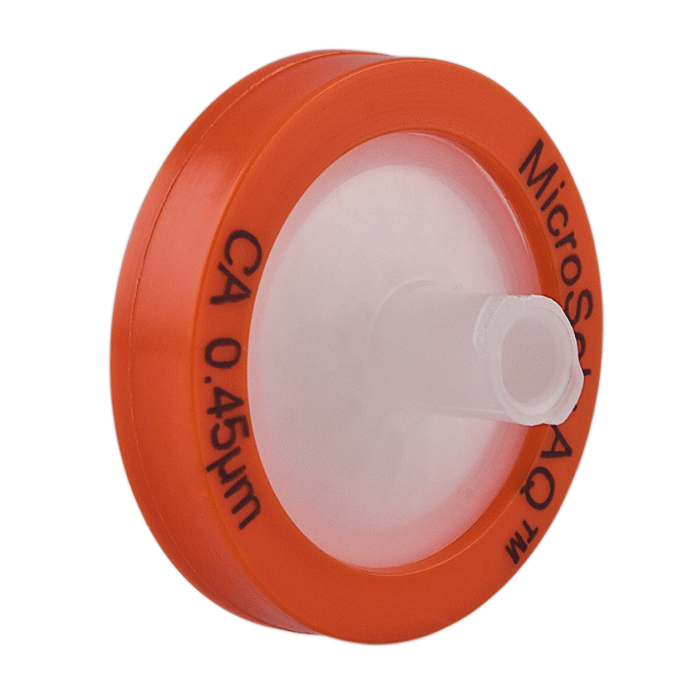 Cellulose Acetate, (CA) is one of the first membranes used in Syringe Filters for Analytical Testing and differ somewhat from Regenerated Cellulose. Our CA filters do not have any Surfactants that can extract out like many other “hydrophilic” Filters will. CA is very low Protein Binding and very useful in biological applications when maximum Sample Recovery is Expected