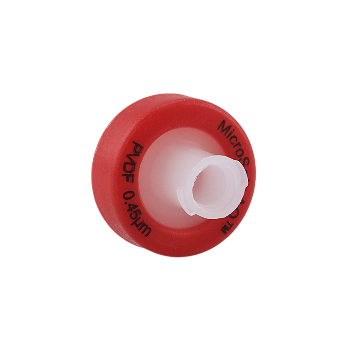 Syringe Filters, 13mm, PVDF, 0.45um Pore Size. Red Polypropylene, AQ Brand. 100/PK.