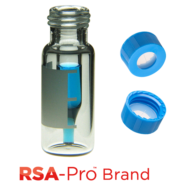 Vial & Cap Kit Includes 100 EA 300ul, Fused Insert, Screw Top, Clear RSA-Pro™ Autosampler Vials with Write on Patch and fill lines and 100 EA matching Screw Caps with Clear AQR Silicone Rubber / Clear PTFE, ultra-pure, Pre-Slit Septa, fitted in the Light Blue Caps. RSA-Pro Brand Easy Purchase Pack. 1/PK. CUSTOM ORDER.