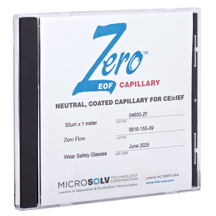 This fused silica capillary is clad with a polyimide outer coating. The inner capillary wall is covalently bonded with Linear Polyacrylamide to create a neutral (no charge) environment that does not conduct current. Therefore there is no Electro-Osmotic Flow (EOF) and ionized analytes will move to the anode or cathode respectively, only by their ion mobility.