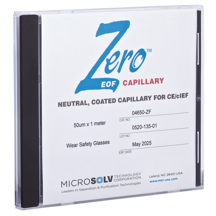 This fused silica capillary is clad with a polyimide outer coating. The inner capillary wall is covalently bonded with Linear Polyacrylamide to create a neutral (no charge) environment that does not conduct current. Therefore there is no Electro-Osmotic Flow (EOF) and ionized analytes will move to the anode or cathode respectively, only by their ion mobility.