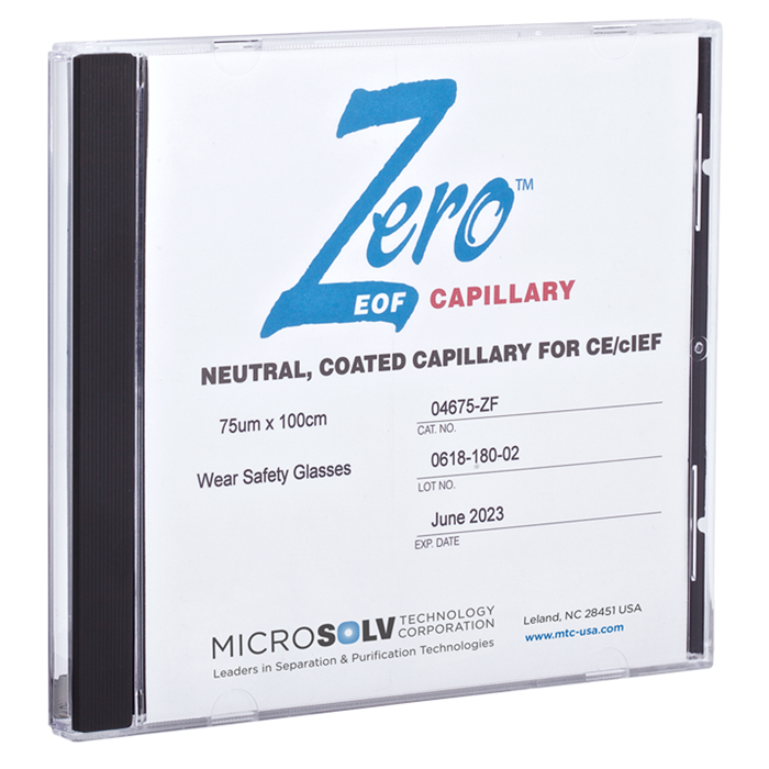 This fused silica capillary is clad with a polyimide outer coating. The inner capillary wall is covalently bonded with Linear Polyacrylamide to create a neutral (no charge) environment that does not conduct current. Therefore there is no Electro-Osmotic Flow (EOF) and ionized analytes will move to the anode or cathode respectively, only by their ion mobility.