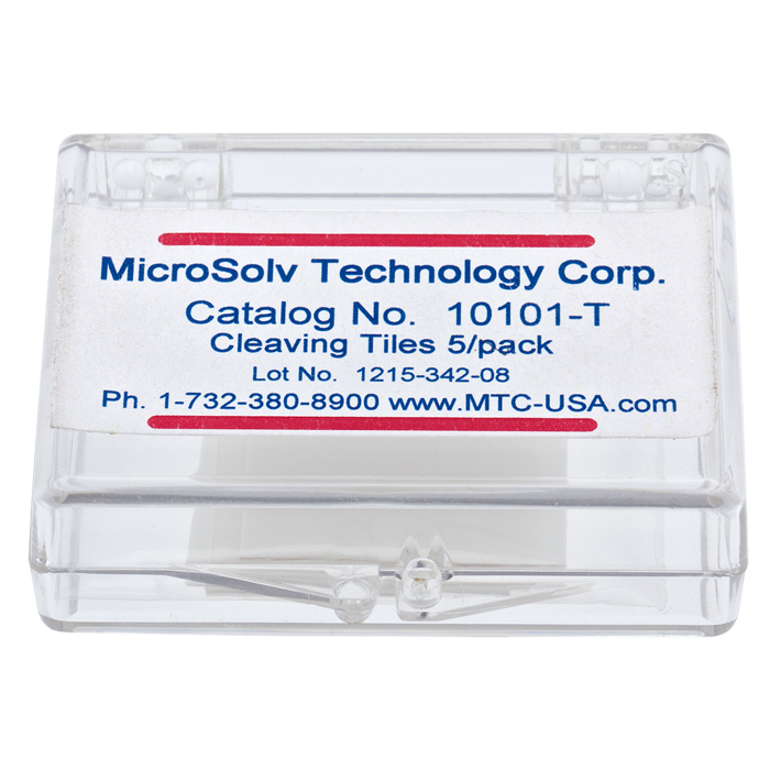 These "Cleaving Tiles" are Thin Squares, made of Ceramic Material with very Sharp Edges. Each of these edges has a Beveled side and a Flat side for proper slicing of Polyimide Cladding on Bare Fused Silica capillaries.