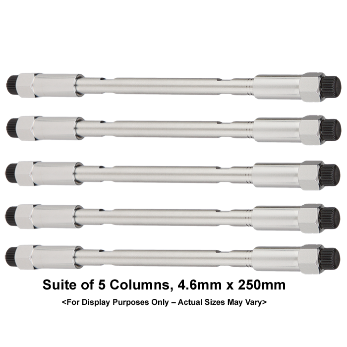 This Kit, 4254 is an economical way to purchase 5 Cogent HPLC Columns that are often used for Method Development and Scouting. Each Column has a 4.6mm Internal Diameter and is 250mm Long, packed with 4um particles, 100A pore size and are manufactured with Cogent TYPE-C™ Silica Hydride.