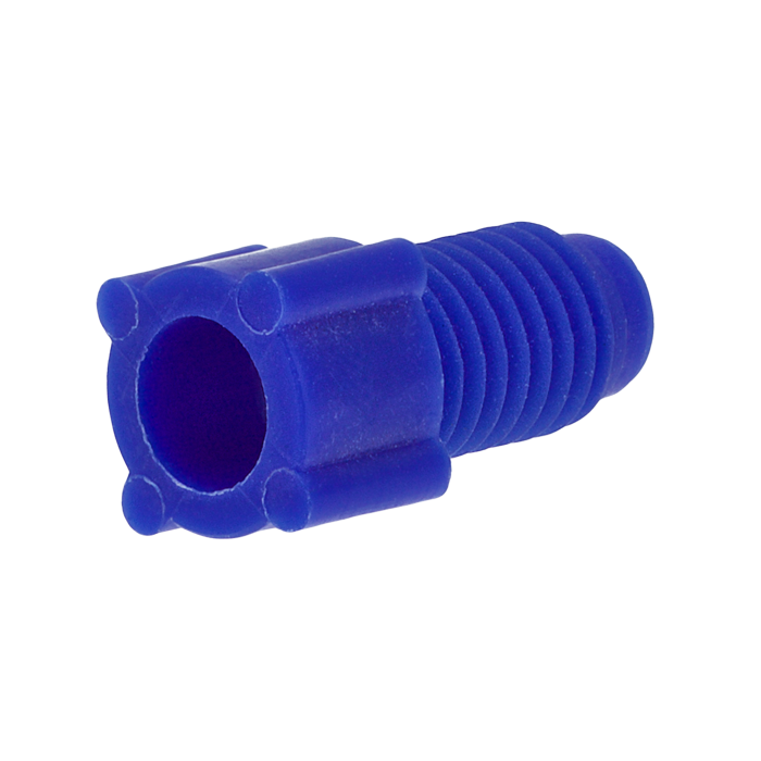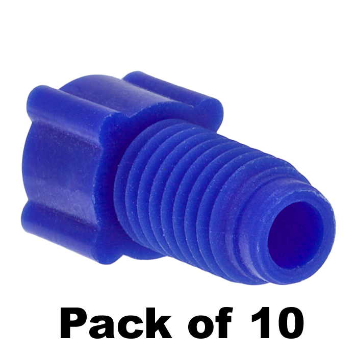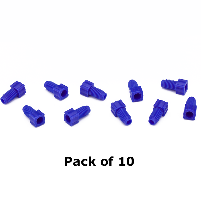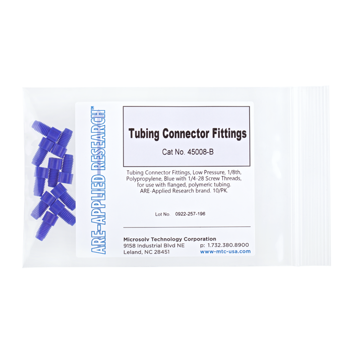 Tubing Connector Nuts, low pressure, 1/8 inch, Polypropylene, Blue with 1/4-28 screw threads, for use with flanged, polymeric tubing. ARE-Applied Research brand. 10/PK.