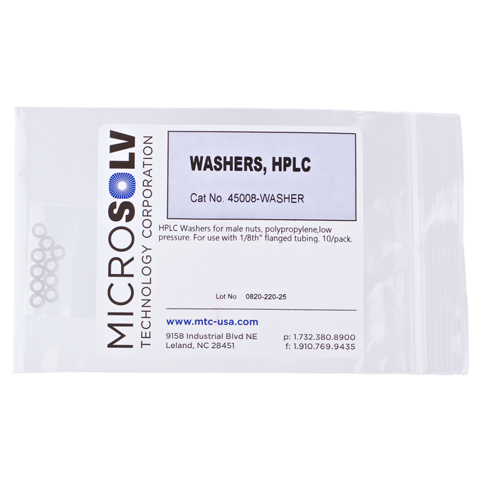 Washers, for use with low pressure, tubing connectors. Use with flanged, 1/8 inch, tubing. Polypropylene. ARE-Applied Research brand. 10/PK.