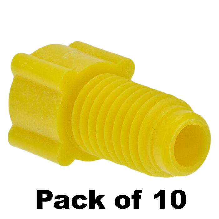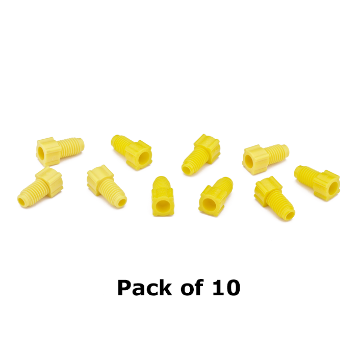 Tubing Connector Nuts, low pressure, 1/8 inch, Polypropylene, Yellow with 1/4-28 screw threads, for use with flanged, polymeric tubing. ARE-Applied Research brand. 10/PK.