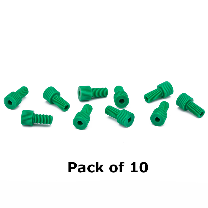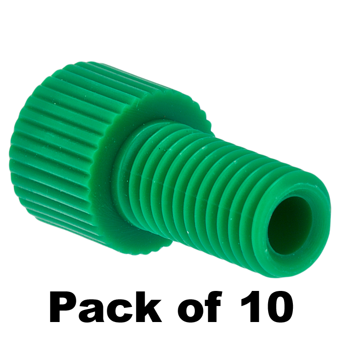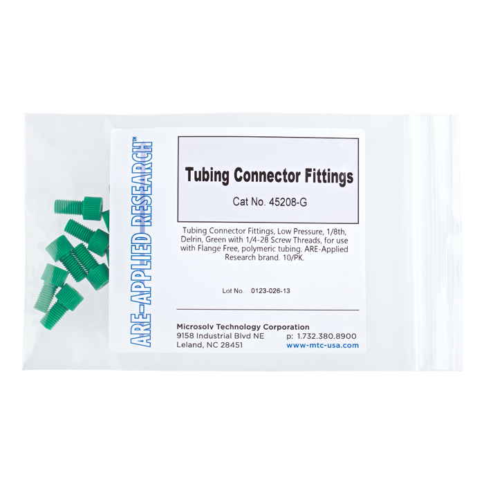 These tubing connector nuts are used to connect 1/8th inch (3.2 mm) OD polymeric tubing in the low pressures zones of HPLC systems and other low pressure, fluidic uses.