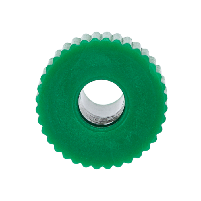 Tubing Connector Nuts, low pressure, 1/8 inch, Delrin, Green with 1/4-28 screw threads, for use with flange free, polymeric tubing. ARE-Applied Research brand. 10/PK.