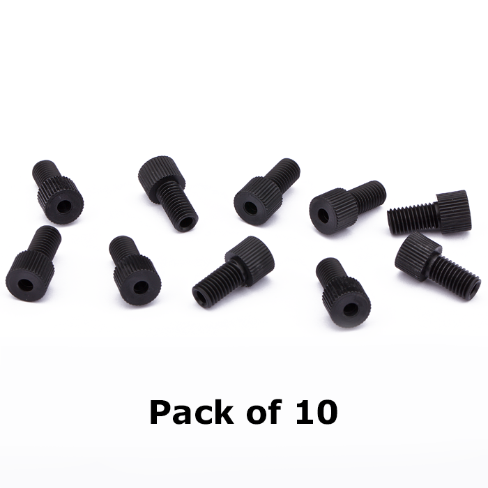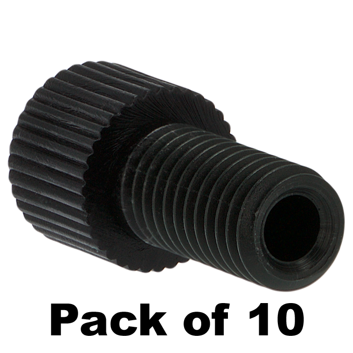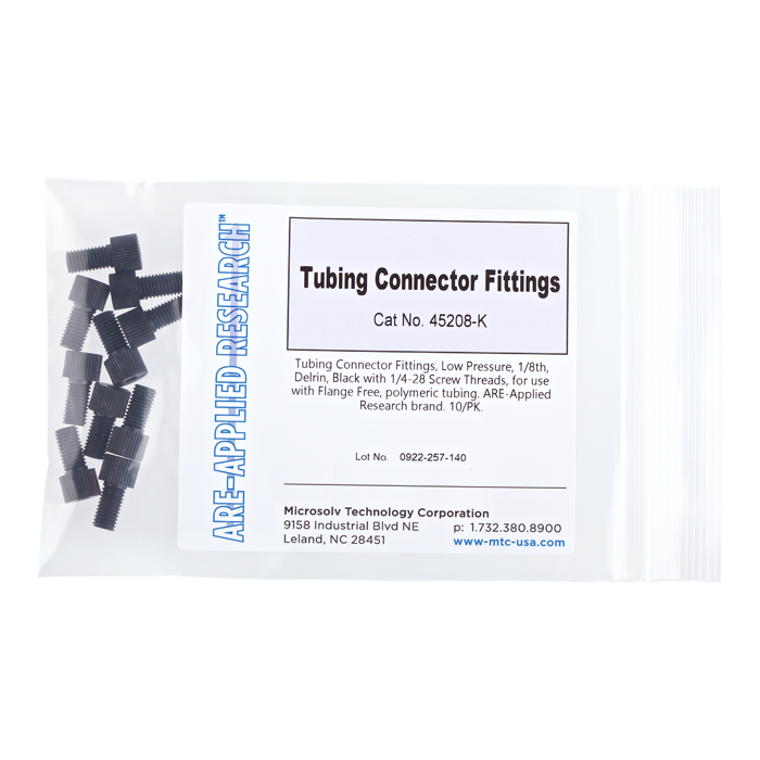 Tubing Connector Nuts, low pressure, 1/8 inch, Delrin, Black with 1/4-28 screw threads, for use with flange free, polymeric tubing. ARE-Applied Research brand. 10/PK.