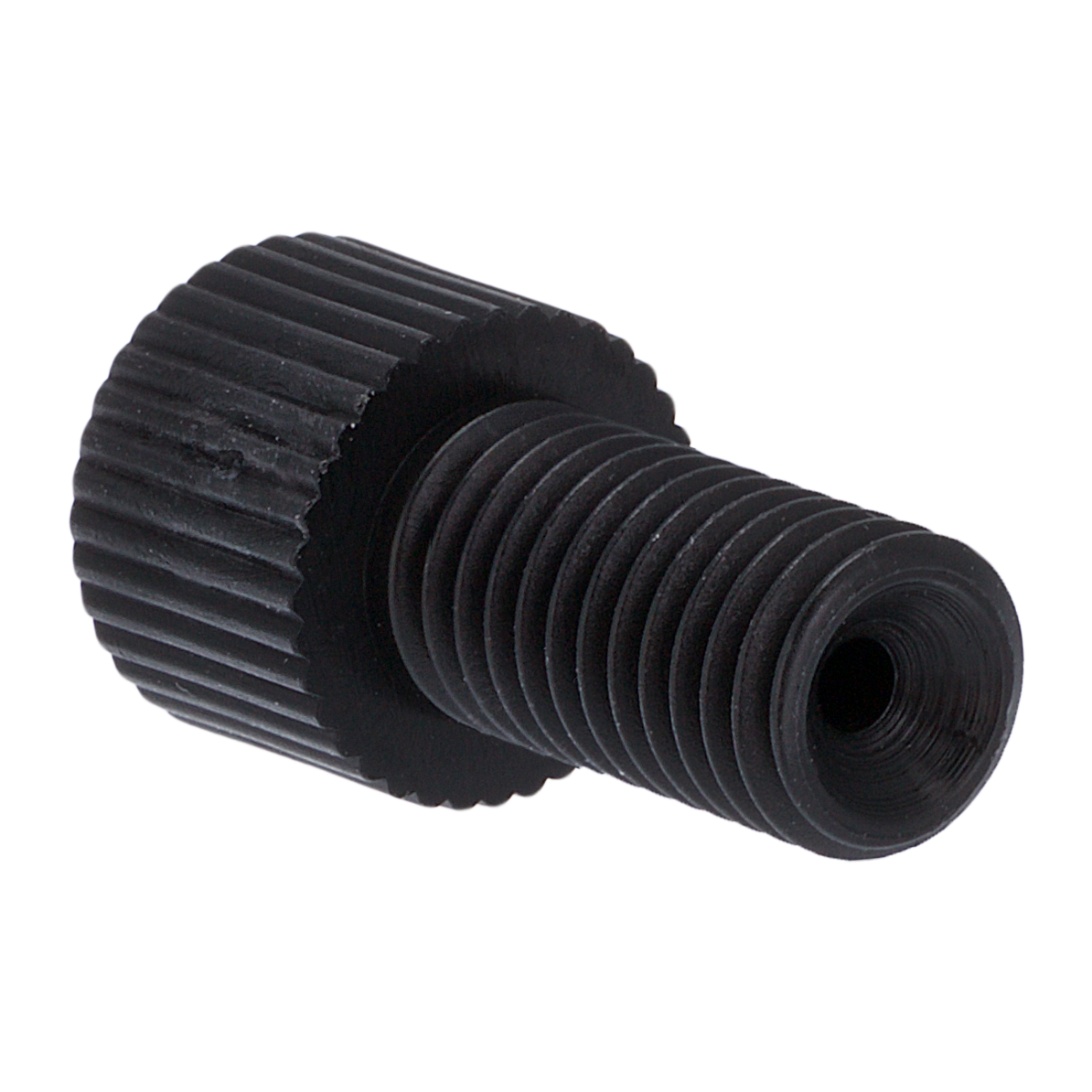 Tubing Connector Nuts, low pressure, 1/16 inch, Delrin, Black with 1/4-28 screw threads, for use with flange free, polymeric tubing. ARE-Applied Research brand. 10/PK.