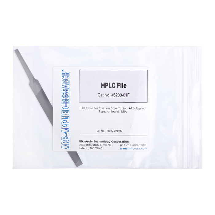 This file is used when cutting or breaking Stainless Steel Tubing for use in HPLC. The proper finish on the file helps to remove burrs and to smooth tubing to achieve a satisfactory tip for a proper connection.