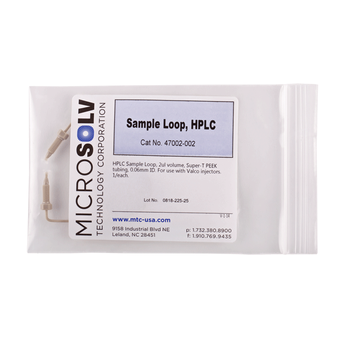 A label with the sample loop volume is attached. Use these sample loops with VICI ® or Valco® brand GC or HPLC injector valves.