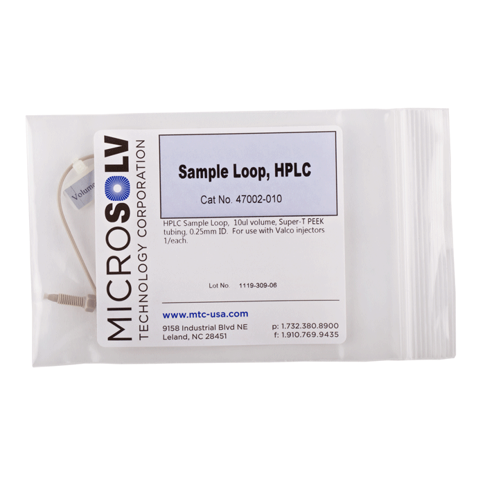 These injector sample loops are made with 1/16th inch OD, Ultra-T™, PEEK tubing for unsurpassed injection reproducibility and accuracy.