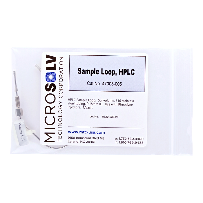 These HPLC injector sample loops are made with welded and annealed, 316 stainless steel tubing for unsurpassed injection reproducibility and accuracy.