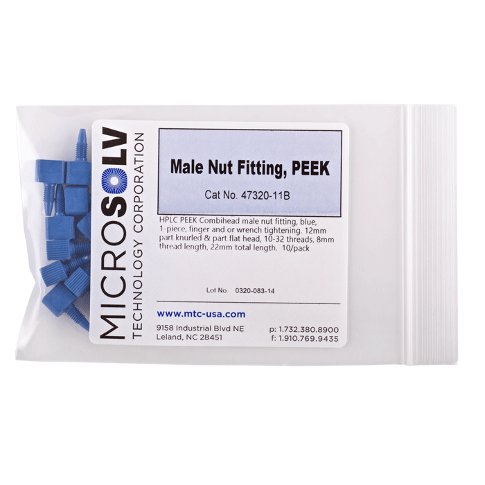 These all PEEK tubing connector fittings are used to connect PEEK or Stainless Steel tubing in the high pressures zones of HPLC systems.