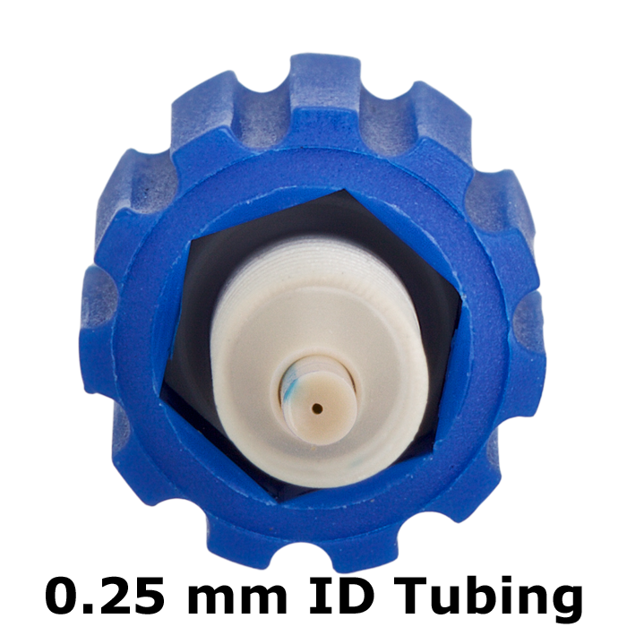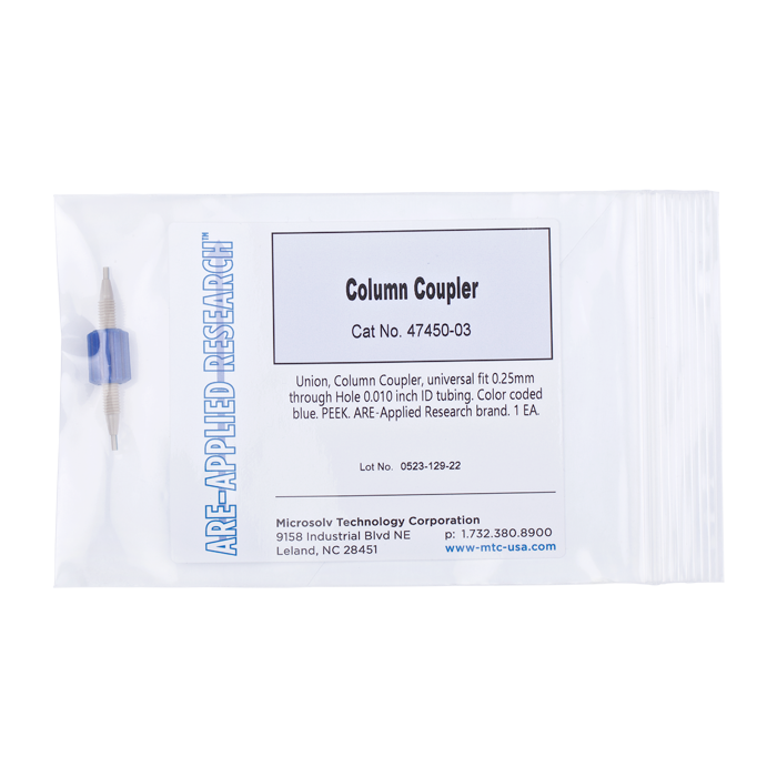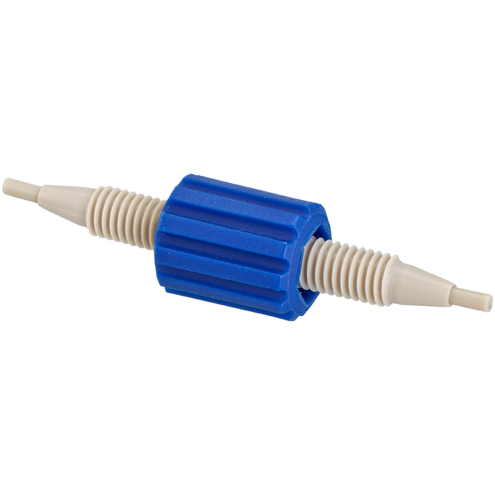 Union, Column Coupler, universal fit 0.25mm through Hole 0.010 inch ID tubing. Color coded blue. PEEK. ARE-Applied Research brand. 1 EA.