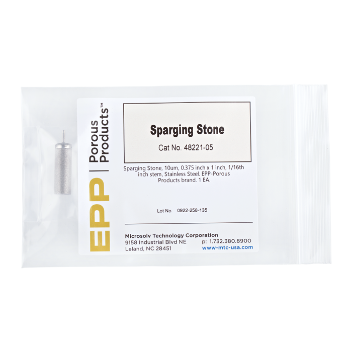 Sparging Stone, 10 um, 0.375 inch x 1 inch, 1/16th inch stem, Stainless Steel. EPP-Porous Products brand. CLEARANCE. 1 EA.