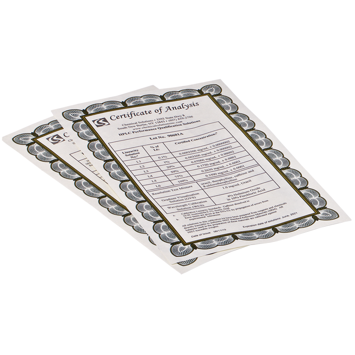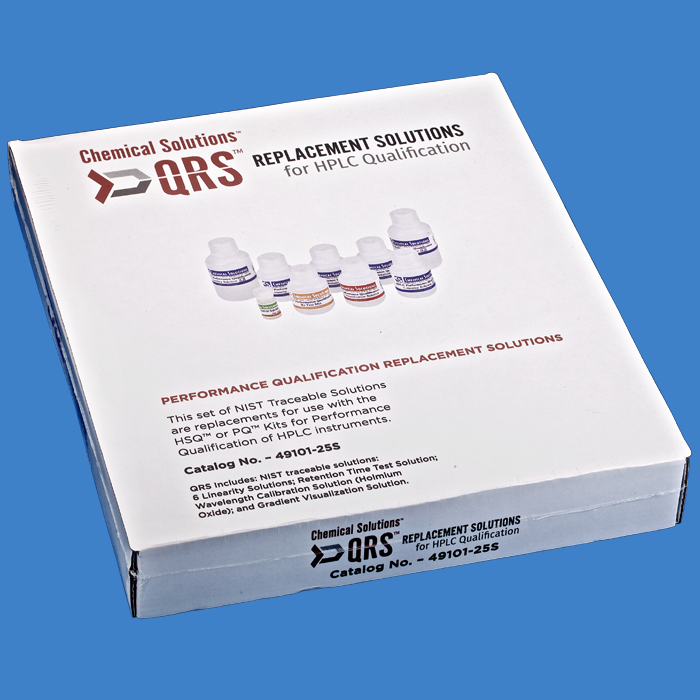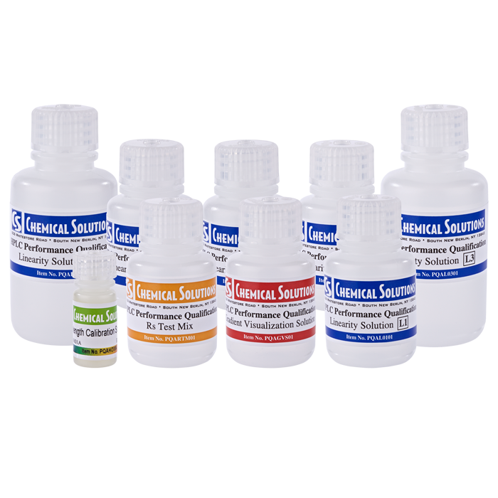 This set of NIST traceable solutions are replacements for use with the HSQ™ or PQ™ kits for performance qualification of HPLC instruments for accuracy and precision.