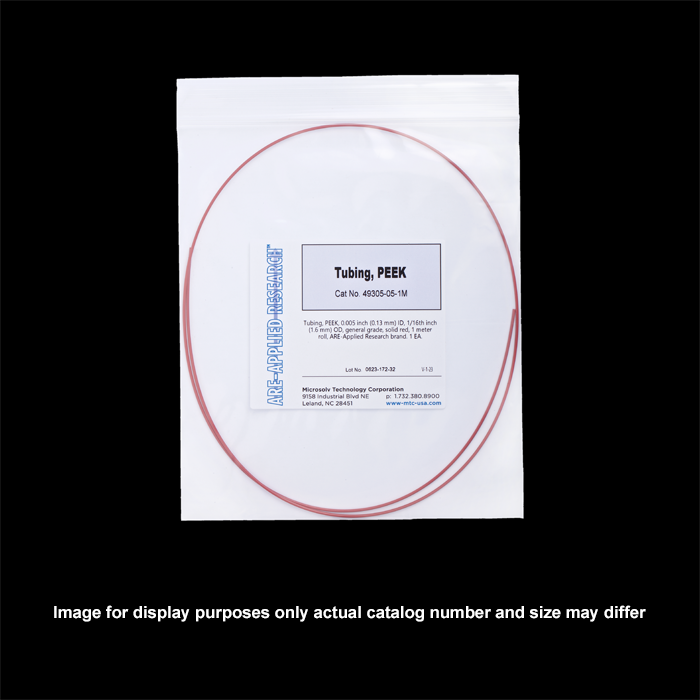 Tubing, PEEK, 0.005 inch (0.13mm) ID, 1/16th inch (1.6 mm) OD, general grade, solid red, 5 meter roll, ARE-Applied Research brand. 1 EA.