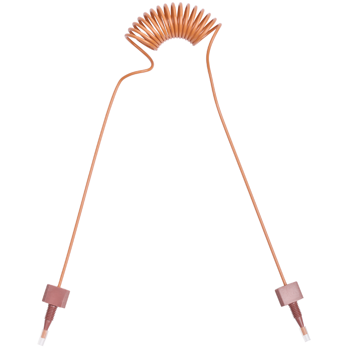 Tubing, PEEK, Coiled, 0.020 (0.50 mm) ID, 1/16th inch (1.6 mm) OD. 945 mm length, HPLC grade, solid orange, with tubing connectors. ARE-Applied Research brand. 1 EA.