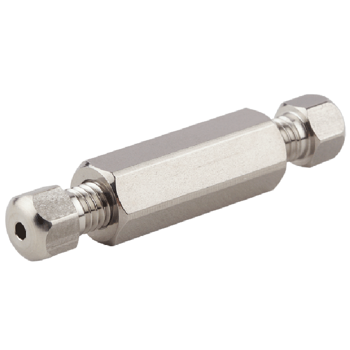 This low dead volume, "Union" is used to connect PEEK or stainless steel tubing on both ends in the high pressures zones of HPLC systems.