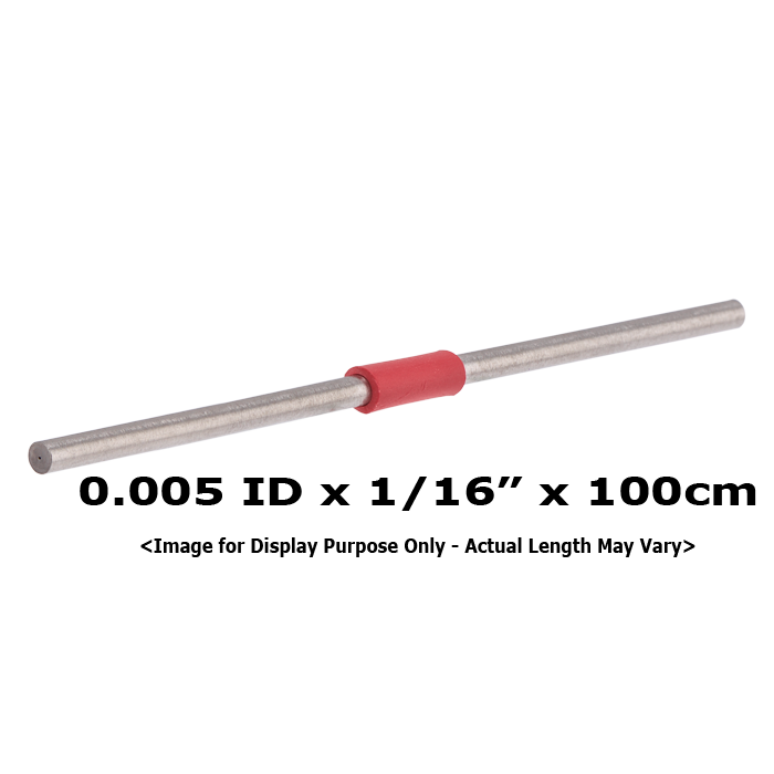 Tubing, Stainless Steel, Pre-Cut, 0.005 inch (0.127 mm) ID, 1/16 inch (1.59 mm) OD, HPLC Grade, Red Band, 100cm Long. ARE-Applied Research brand. 1 EA.
