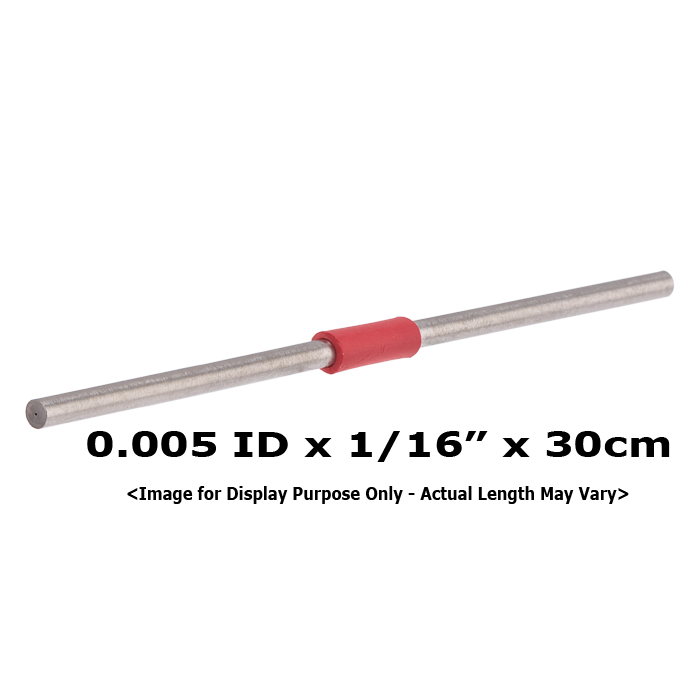 Tubing, Stainless Steel, Pre-Cut, 0.005 inch (0.127 mm) ID, 1/16 inch (1.59 mm) OD, HPLC Grade, Red Band, 30cm Long. ARE-Applied Research brand. 1 EA.