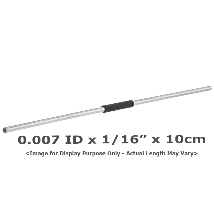 Tubing, Stainless Steel, Pre-Cut, 0.007 inch (0.178) ID, 1/16 inch (1.59 mm) OD, HPLC Grade, Black Band, 10cm Long. ARE-Applied Research brand. 1 EA.