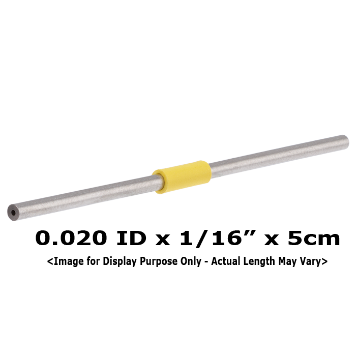 Tubing, Stainless Steel, Pre-Cut, 0.020 inch (0.508mm) ID, 1/16 inch (1.59 mm) OD, HPLC Grade, Yellow Band, 5cm Long. ARE-Applied Research brand. 1 EA.