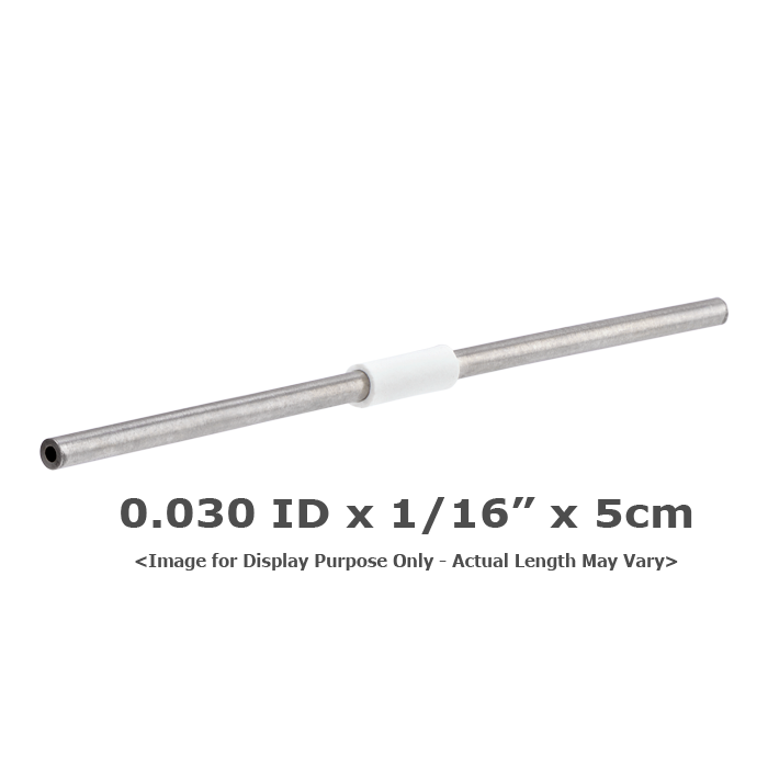 Tubing, Stainless Steel, Pre-Cut, 0.030 (0.762 mm) inch ID, 1/16 inch (1.59 mm) OD, HPLC Grade, White Band, 5cm Long. ARE-Applied Research brand. 1 EA.