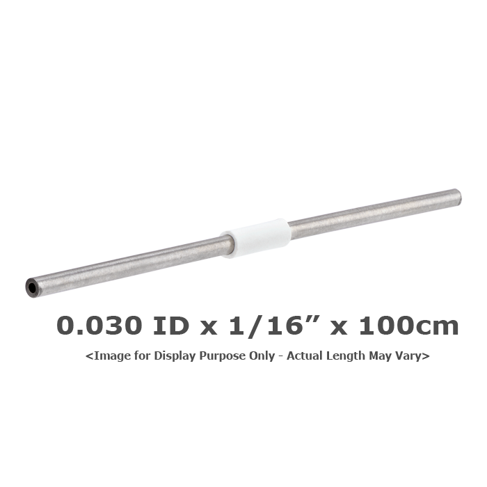 Tubing, Stainless Steel, Pre-Cut, 0.030 inch (0.762 mm) ID, 1/16 inch (1.59 mm) OD, HPLC Grade, White Band, 100cm Long. ARE-Applied Research brand. 1 EA.