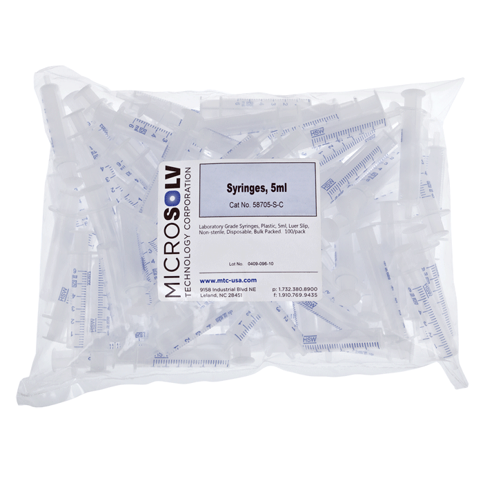 Syringe, Chrom. Disposable, 5ml, Luer Slip, Non Sterile. MicroSolv Brand. 100/PK.
