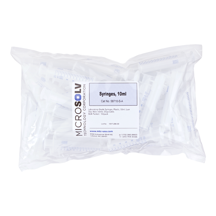 Syringe, Chrom. Disposable, 10ml, Luer Slip, Non Sterile. MicroSolv Brand. 50/PK.
