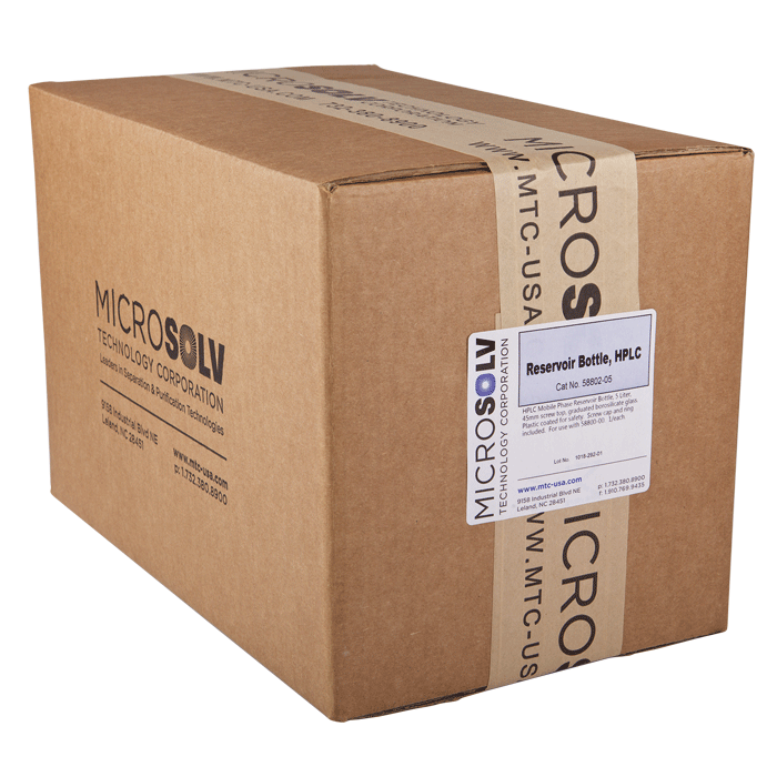 Bottle, Mobile Phase Reservoir, Safety, Coated Glass, Clear, 5L, Screw Top, GL45 Threads. MicroSolv Brand. 1 EA.